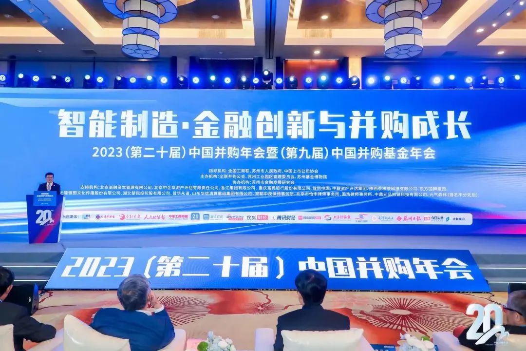 2023年11月6日,以“智能制造、金融創新與并購成長”為主題,第二十屆中國并購年會暨第九屆中國并購基金年會在蘇州獨墅湖世尊酒店圓滿舉辦。本屆年會由全國工商聯、蘇州市人民政府、中國上市公司協會指導,全聯并購公會、蘇州工業園區管理委員會、蘇州基金博物館聯合主辦,蘇州市金融發展研究會協辦。全國工商聯領導、蘇州市政府領導、知名專家、學者、企業家蒞會,業界頂級并購與基金機構的三百余位觀眾出席線下參會交流。