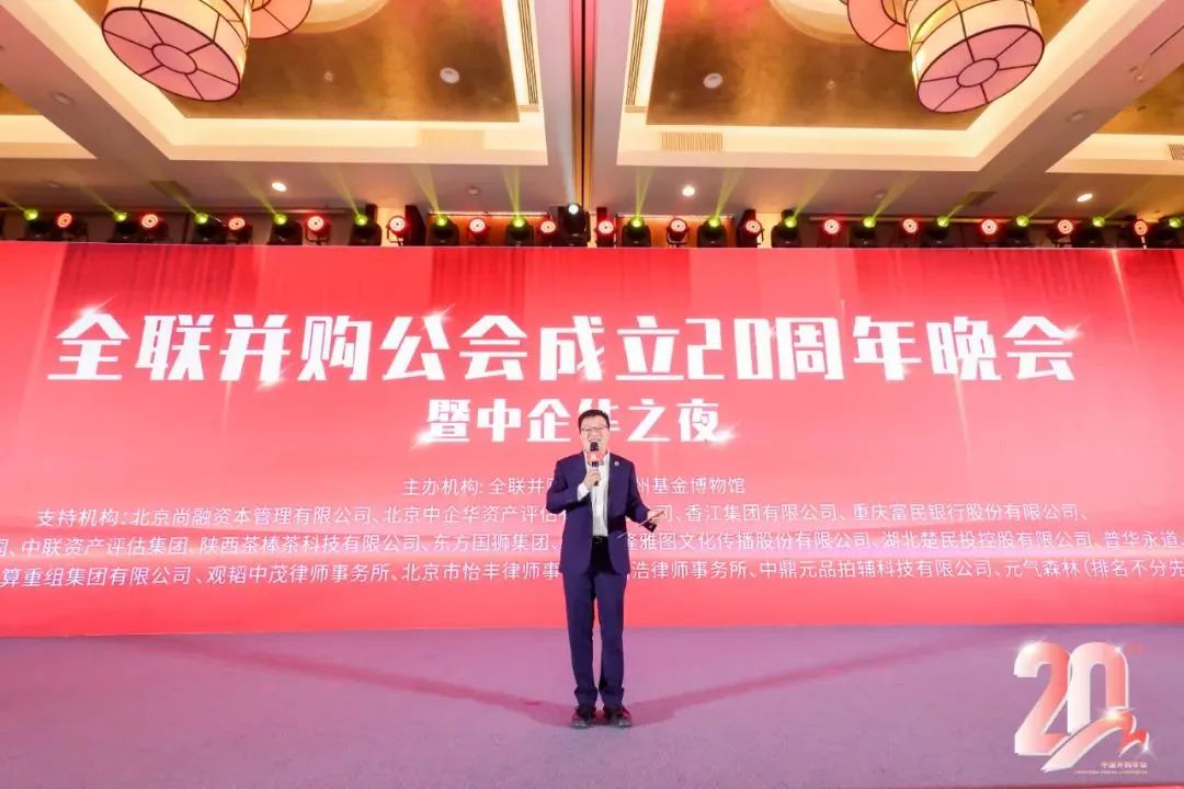 晚會上,尉立東會長作總結致辭。尉立東會長首先向社會各界、創會領導和理事會員對并購公會的長期支持表示衷心感謝。他強調,公會成立20周年,始終與時代同步,與行業同行。今天大家團聚在此,共享榮耀和喜悅,見證光榮與夢想。展望未來,希望公會繼續成為中國并購行業市場化專業化的引領者,成為中國并購人的心靈家園,希望大家繼續支持公會發展,攜手共創并購公會新的輝煌。